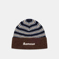 Striped Beanie - Blue & Brown