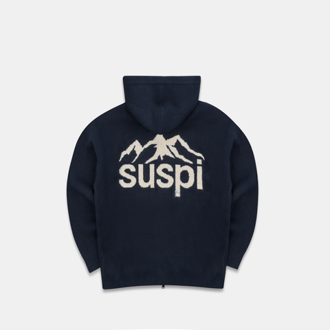 Landscape Knitted Zipped Hoodie - Navy